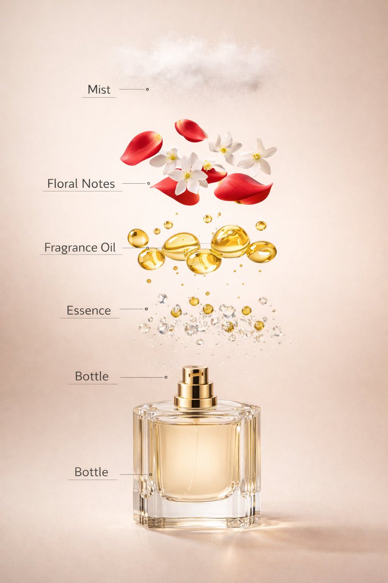 Prompt 1: A luxury high-end product photograph of an elegant transparent glass perfume bottle with a polished golden cap, centered against a soft beige and cream seamless studio background. The bottle contains pale golden fragrance liquid and has a premium minimal designer aesthetic. Glossy reflecti...