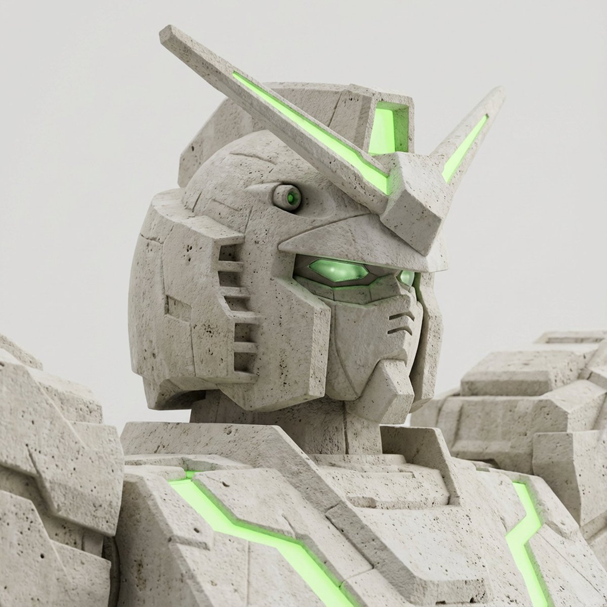 Close-up three-quarter bust sculpture of [your favorite character] carved from [grey-white] [travertine limestone]. Head fully visible, no part of the head cropped. Hair and top of head
