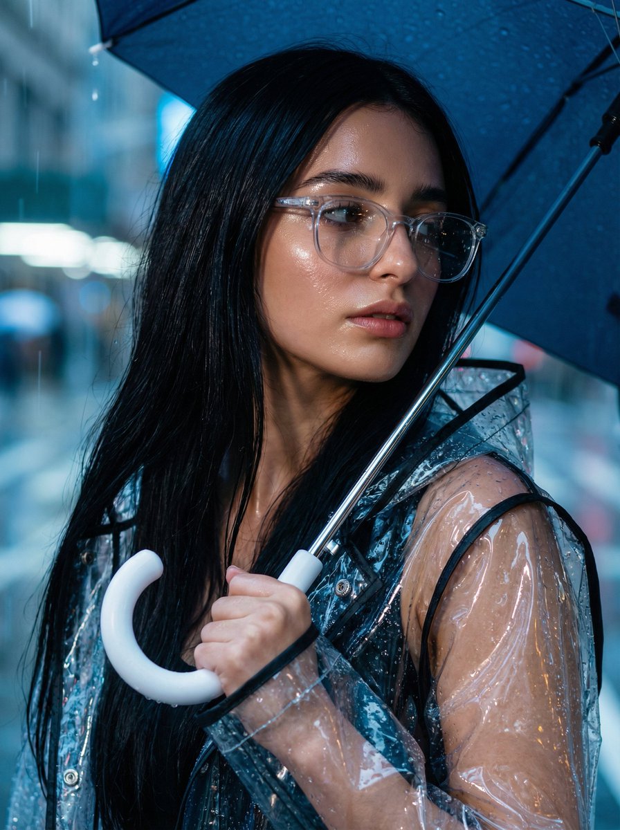 PhotoCinematicHero PortraitFashion LookClose-upRainy StreetElegantRain StreaksSocial Media PostMarketing Campaign