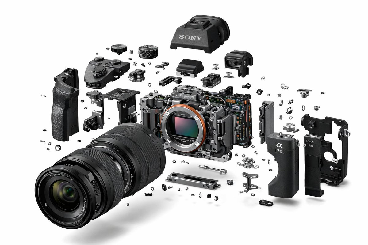 Create an exploded view of the [electronic device] where all components are separated and floating in mid-air. Disassemble every visible part including internal structures, outer shell, mechanical elements, and small details, arranging