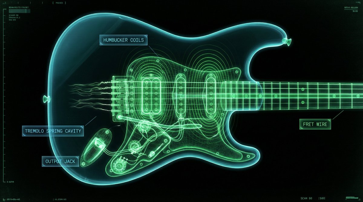This prompt generates photorealistic X-ray scans of an object, revealing its internal structure as a glowing neon wireframe against a pure black background. The outer shell is semi-transparent, complemented by floating holographic labels.
