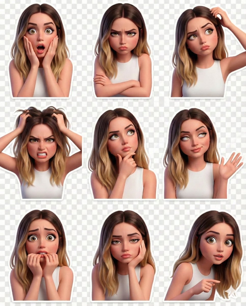 Sticker Sheet3D RenderCartoonCharacter DesignCute & PlayfulVibrant ColorsMessaging StickerSocial Media PostAvatar / ProfileTransparent Background