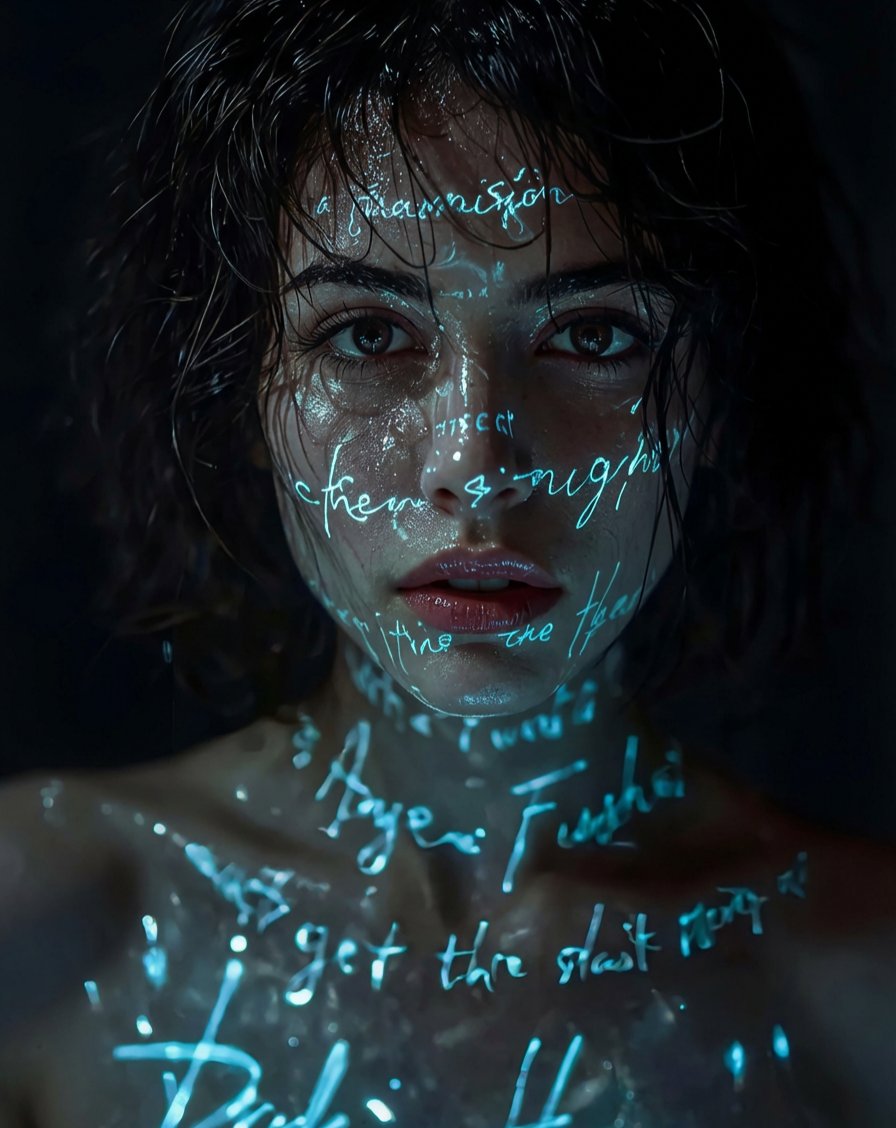 Cyberpunk Split-Face Portrait with Chrome Skull and Liquid Fragments