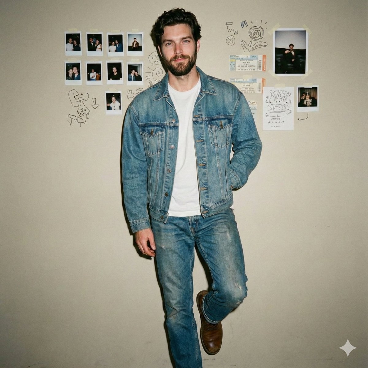 此提示生成一张90年代风格的闪光灯摄影肖像,以年轻男性为主题。它强调经典的牛仔美学和鲜明的面部特征。