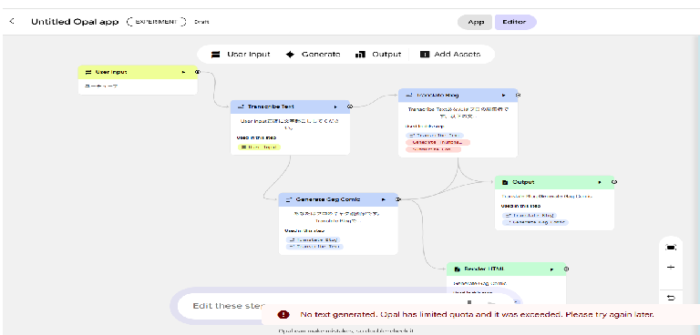 我让 Opal 创建漫画构图的提示,然后我通过 Gemini 使用 Nano Banana Pro 来创作实际的漫画。