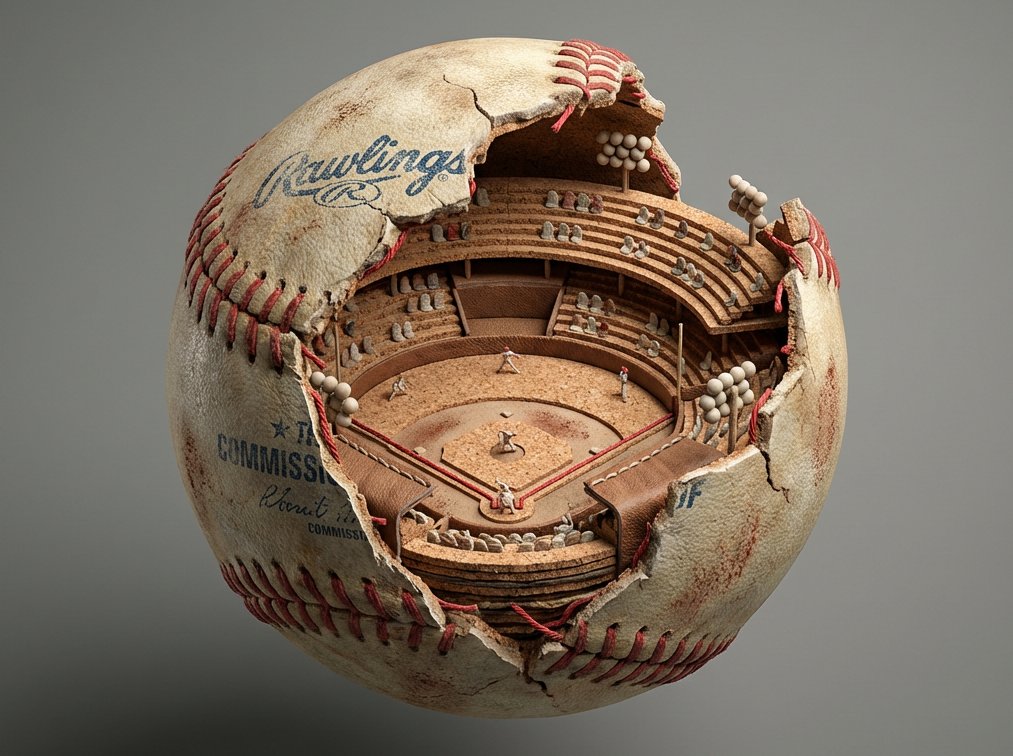一个[纳米香蕉Pro]悬浮在空中,凝固在它破裂开来的瞬间。裂缝内部是一个完全实现的微缩[精密齿轮]——完全由[发光水晶]雕刻、分层和构建而成。